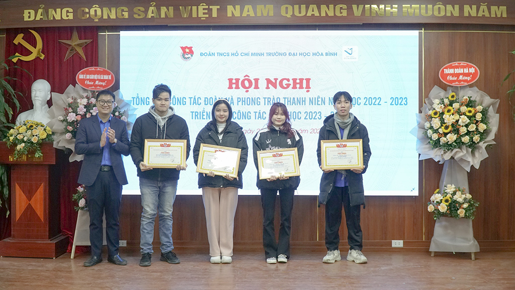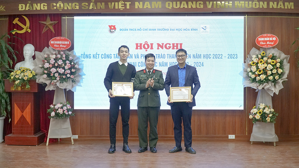 Trong buổi hội nghị tổng kết, nhằm ghi nhận những thành tích, những nỗ lực không ngừng của Đoàn viên, thanh niên Trường Đại học Hòa Bình. Nhà trường vinh dự được vinh danh, khen thưởng và trao tặng bằng khen cao quý cho các tập thể, cá nhân, cán bộ Đoàn như: